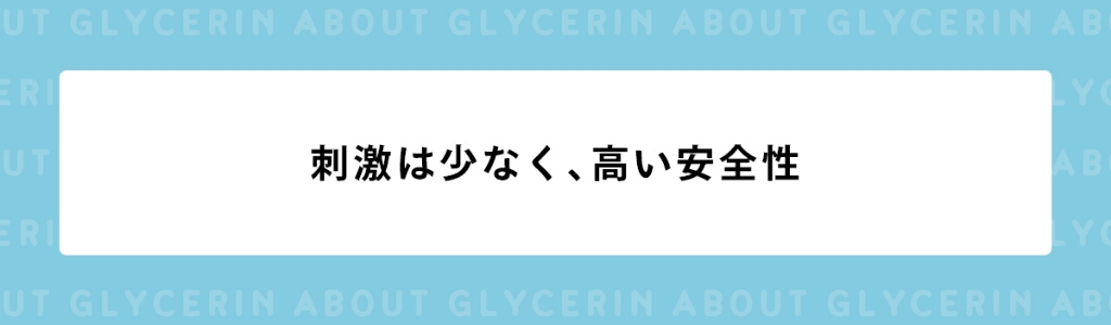 グリセリンは、アレルギー性や皮膚刺激性はほとんど無いといわれ、安全性の高い成分です。