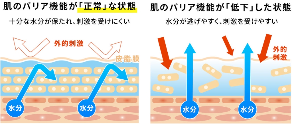 「敏感肌」の症状はさまざまですが、「敏感肌」になる原因は共通しています。それは肌が本来持つ「バリア機能」の低下です。